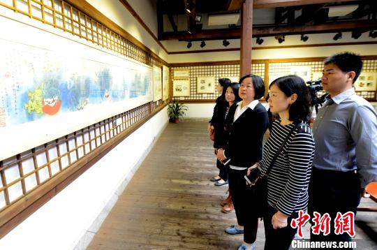 展覽圍繞文學(xué)展開(kāi),展出黃永玉文學(xué)手稿、版本、繪畫(huà)等不同樣式的作品200余件,吸引不少觀眾前來(lái)觀展。 記者劉可耕 攝