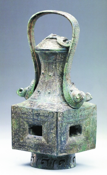 江西新干大洋洲商墓中曾出土過一件器形特別的“獸面紋提梁方腹銅卣(yǒu)”,與一般的卣不同,它的方腹下有十字形透空槽穴,腹內(nèi)形成通向四壁的十字形管道。卣是商周時流行的一種盛酒器,但這個卣為什么要這樣設(shè)計?研究后發(fā)現(xiàn),這是一件可加熱、保溫的多功能盛酒器,其設(shè)計相當(dāng)精巧:十字形透空槽穴可放置炭火,給酒加熱、保溫;又可直接放在沸水內(nèi)燙,而通向四壁的十字形管道,與沸水的接觸面加大,可使酒快速升溫,是一種多功能卣。