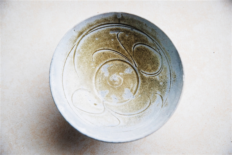 11月9日,廣東省文物鑒定站文物鑒定專家謝海山在鑒定潭門漁民捐贈的物件。這是一件五代紅斑紋青釉瓷碗。