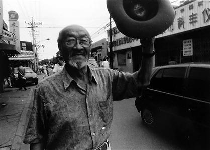 圖為王洛賓欣然漫步北京街頭。 王瑤 攝