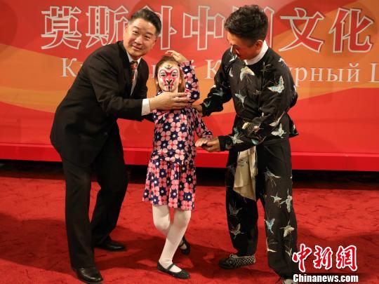當(dāng)?shù)貢r間24日,“感受中國古典之美——京劇藝術(shù)講座”在莫斯科舉辦。主講人江其虎(左一)教俄羅斯小朋友表演京劇。 王修君 攝