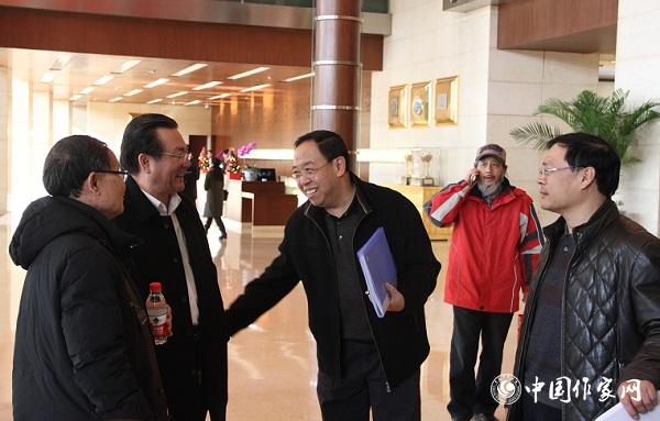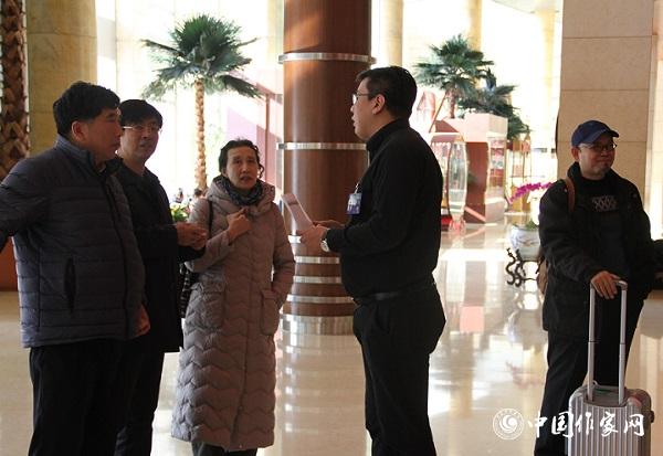 11月28日,中國(guó)作協(xié)第九次全國(guó)代表大會(huì)與會(huì)代表在報(bào)到時(shí)交談。
