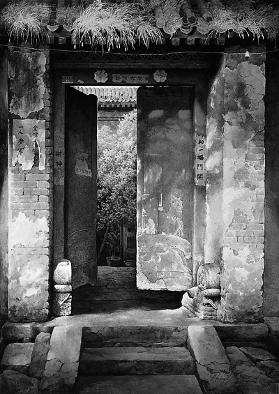 從小在水鄉(xiāng)的小巷里長大的他,那時(shí)住在北京的胡同里,每天看到的是胡同里老百姓的生活,是北京人率真坦誠的胸懷。那種傳統(tǒng)積淀的巷陌風(fēng)情深深吸引著他。他開始拿起筆畫胡同,畫面中那些被精心描繪的美麗細(xì)節(jié)正是他表達(dá)內(nèi)心感受的一種方式。