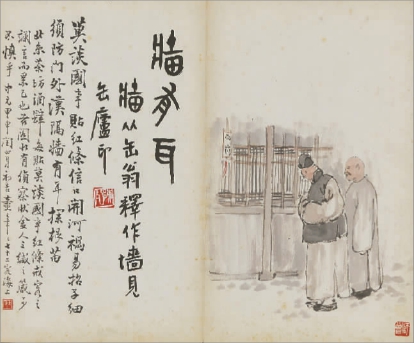 作為刻銅藝術最有影響力的倡導者,陳師曾和姚茫父亦是至交,經常書畫唱和。1923年9月17日,陳師曾離世;姚茫父不僅寫下七言律詩《哭師曾》予以悼念,還把《北京風俗圖》和自己所題的34首詞合在一起,題為《菉猗室京俗詞題朽道人畫》 ,作為二人友誼的紀念。