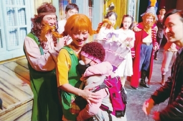 《皮皮·長襪子》演出后,唐妍與白血病女孩歡歡擁抱 中國兒童藝術(shù)劇院提供