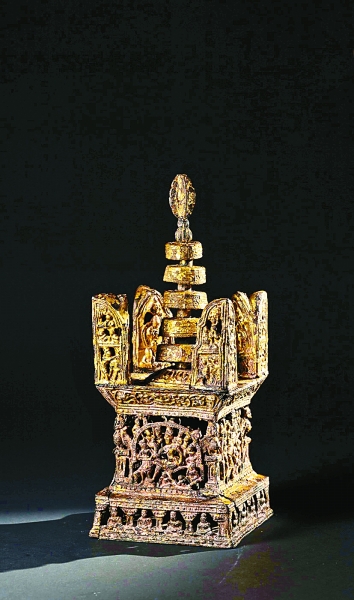 陳杰告訴記者,這是上海第一次經(jīng)考古發(fā)掘確認(rèn)的古塔遺址。從塔基的直徑而言,隆平寺塔的體量超過目前上海所存的13座古塔。其結(jié)構(gòu)特殊,不同于目前國(guó)內(nèi)已經(jīng)發(fā)掘的塔基形式。塔基發(fā)現(xiàn)了保存完整的地宮,這令考古人員興奮不已。地宮中置套函,函外左右各有一座阿育王塔。套函共有四層,最外為木函,向內(nèi)依次為鐵函、木貼金函、銀函。銀函底部鋪有一層彩色寶石,上置一尊釋迦牟尼涅槃像。此外,在木函內(nèi)還裝藏有銀箸、銀勺、銀釵、銀龜、銅鏡、水晶佛珠等一批供奉品。本次發(fā)掘在套函內(nèi)發(fā)現(xiàn)了一個(gè)銅瓶,瓶?jī)?nèi)裝有4顆圓珠,其中3顆為水晶質(zhì),它們應(yīng)當(dāng)就是佛教圣物舍利,這一發(fā)現(xiàn)也與文獻(xiàn)中關(guān)于隆平寺塔“中藏舍利”的記載相符。