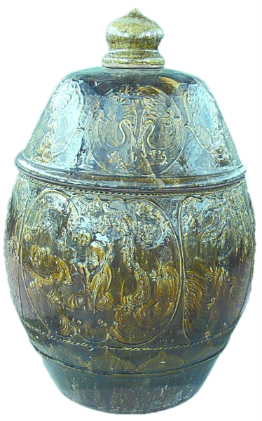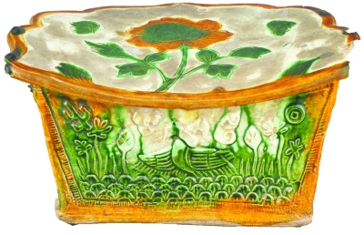 河北省豐寧滿族自治縣是多民族地區(qū),曾先后有肅慎、山戎、匈奴、庫莫奚、契丹、女真、蒙古、滿洲等民族聚居,他們?cè)谶@里創(chuàng)造了燦爛的民族文化,同時(shí)也給后世子孫留下了大量的珍貴文物。豐寧博物館收藏著一件遼代的“三彩瓷枕”(左圖)。這件“鎮(zhèn)館之寶”學(xué)名是“三彩云頭形雙碟牡丹紋貼花獅面五角長方形枕”,是遼代的生活用品,目前在全國是唯一一件。右圖為“和尚坐罐”,又叫“蟹青釉開光龍鳳仙人壽字松鶴紋帶蓋葫蘆頂大甕”,為元代和尚的喪葬用品,全國也只發(fā)現(xiàn)兩件。