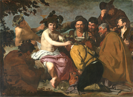 《酒神的勝利》,迭戈·委拉斯開茲,1628至1629年,布面油畫,165 x 225厘米,現(xiàn)藏馬德里普拉多博物館