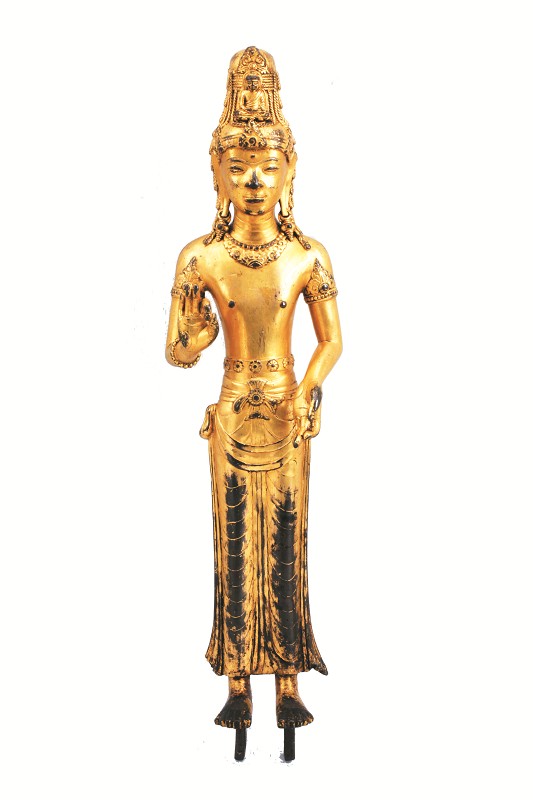 無論是歷史文獻(xiàn)還是考古發(fā)掘,都表明南方絲綢之路的起點(diǎn)就是成都。在三星堆、金沙遺址,就已發(fā)現(xiàn)有3000多年前的象牙、海貝等文物,說明當(dāng)時(shí)的成都已經(jīng)與印度洋流域有了經(jīng)貿(mào)和文化往來。此次參展的南絲路文物中,三星堆選出了“戴金面罩青銅人頭像”參展。四川省社科院歷史研究所研究員段渝認(rèn)為,這種黃金面罩的文化符號(hào),并非中國文化固有。相反,在兩河流域、愛琴海地區(qū)有類似的文化出現(xiàn)。根據(jù)兩地文物出現(xiàn)的年代順序,證明三星堆的這種文化極可能是文明傳播和交流的結(jié)果。