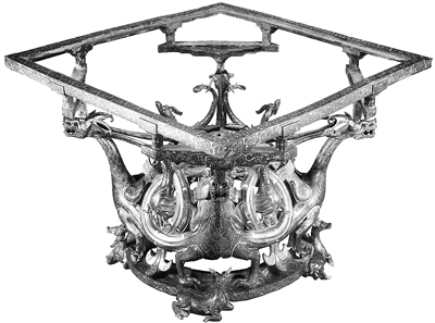 “案座底盤(pán)為圓形,由四只梅花鹿承托,底盤(pán)上方昂首挺立四條雙翼雙尾的神龍,龍的雙尾反勾住頭上的雙角,雙翼在中央聚合成半球形,龍尾扭結(jié)處四只鳳鳥(niǎo)引頸展翅而出?!苯裉?,拿著文物圖片給記者講解時(shí),劉來(lái)成還不由自主地露出心馳神往的表情。