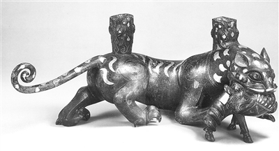 錯(cuò)金銀虎噬鹿銅屏風(fēng)座。