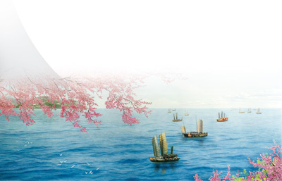 在“筆墨當(dāng)寫(xiě)時(shí)代”的啟發(fā)下,她想到,針線能不能也表現(xiàn)大時(shí)代?于是,她把時(shí)代精神融入針線,有了遨游太空的《我愛(ài)中華》,有了獻(xiàn)給新中國(guó)成立60周年的《江山如此多嬌》,有了懸掛在人民大會(huì)堂的《春早江南》(圖④)……從創(chuàng)意構(gòu)思到畫(huà)面組織設(shè)計(jì),姚建萍賦予了蘇繡更廣闊的思想性、時(shí)代性。她歷時(shí)3年創(chuàng)作,2009年收針的巨幅作品《江山如此多嬌》,幅面寬闊,氣勢(shì)宏大。在色彩的冷暖對(duì)比與相互映襯下,形成明朗、清澄的玉宇氣象。而作品《絲綢之路》(圖③)蒼渾而深厚的橙黃、醬紅色調(diào)似見(jiàn)歷史的淵深與悠遠(yuǎn)。中國(guó)美術(shù)館館長(zhǎng)吳為山評(píng)價(jià),《絲綢之路》中有明與暗、光與影、動(dòng)與靜,每組矛盾都交織著可歌可泣的歷史情懷。