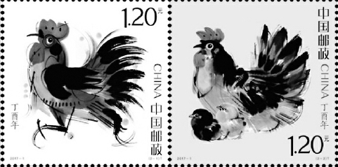 因此,在最終定稿的《丁酉年》特種郵票中,第一枚圖案是一只威武強壯、高傲奔放的雄雞,第二枚則由呵護幼崽的雞媽媽與可愛的小雞組成,形成溫馨和樂的“合家歡”氛圍。