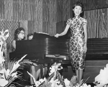 華人女作曲家協(xié)會(huì)副主席張寧和上海音樂(lè)學(xué)院副教授李嘉,雖沒(méi)有與明儀合唱團(tuán)合作的作品,但她們于舞臺(tái)上下演出前后,依然感受和欣賞到費(fèi)明儀優(yōu)雅的名媛風(fēng)范。張寧回憶說(shuō):“最后一次走臺(tái)排練,見(jiàn)到費(fèi)老師,她笑瞇瞇的,彎月一樣的眼睛,被香港同行親切地稱為密斯費(fèi)。晚間正式演出,密斯費(fèi)著一身粉亮閃光的長(zhǎng)旗袍登場(chǎng),修長(zhǎng)的身姿、清楚的手勢(shì),優(yōu)雅得不行。散場(chǎng)后的宵夜餐桌上,大家在一起開開心心暢所欲言。我專門請(qǐng)教本地朋友關(guān)于粵語(yǔ)中‘謝謝’的幾種不同表達(dá),沒(méi)想到密斯費(fèi)不僅精通英語(yǔ)、法語(yǔ),甚至能講一口地道蘇州話、天津話。她邊舉例邊講解粵語(yǔ)中‘謝謝’的區(qū)別,顯示了她優(yōu)越的語(yǔ)言天賦和文化修養(yǎng)。這時(shí)的密斯費(fèi),身著深色花旗袍,外罩金色長(zhǎng)袖外衫,珍珠項(xiàng)鏈清晰可見(jiàn),只是不變的彎彎月牙眼睛,依然對(duì)著我們笑……”