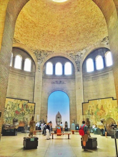 中國藝術(shù)是美國賓夕法尼亞大學(xué)考古和人類學(xué)博物館的收藏特色之一,其中國展廳設(shè)在博物館建筑最核心區(qū)域———一座圓形的大廳內(nèi),擁有數(shù)量質(zhì)量均可觀的中國古代青銅器、陵墓石刻、佛教雕塑和寺觀壁畫等,曾經(jīng)引領(lǐng)過北美地區(qū)中國藝術(shù)的收藏風(fēng)潮。“中國圓廳”甚至成了北美學(xué)界的專有名詞,專指賓大博物館主穹頂下收藏著的藝術(shù)奇珍。圖從左至右分別為賓大博物館館藏唐三彩馬以及“中國圓廳”內(nèi)景。