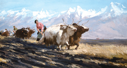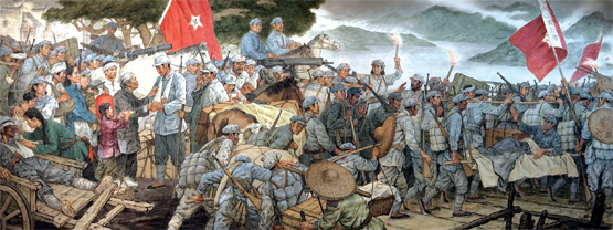 2016年是中國共產(chǎn)黨成立95周年,又是中國工農(nóng)紅軍長征勝利80周年,這是兩個有著內(nèi)在關聯(lián)的紀念。因此,2015年12月,中國文聯(lián)與中國美協(xié)發(fā)布了“紀念中國共產(chǎn)黨成立95周年全國美術作品展征稿通知”,而紀念中國工農(nóng)紅軍長征勝利80周年的組織創(chuàng)作則在定向的美術家群體中展開,同時,文化部聯(lián)合中國美術館也在籌備紀念建黨95周年的展覽。關于“建黨”和“長征”這兩個主題的創(chuàng)作,是新中國美術史上長盛不衰的革命歷史主題,過去曾經(jīng)有很多能夠代表時代的創(chuàng)作,積淀了豐厚的美術創(chuàng)作的遺產(chǎn)?!敖h”題材的主題美術創(chuàng)作在20世紀后期的延續(xù)與發(fā)展,得力于像紀念建黨80周年、90周年等特別年份里所組織的創(chuàng)作,而在全國美協(xié)以及與建黨主題所在城市相關的上海和浙江兩地美協(xié)組織的創(chuàng)作中,也都不斷有新的“建黨”題材作品的出現(xiàn)?!伴L征”題材則早在新中國建立初期的革命歷史博物館組織的創(chuàng)作中,吳作人于1951年為紀念建黨30周年創(chuàng)作了油畫《過雪山》,成為了那個時代的代表作。