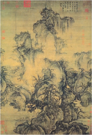家園經(jīng)驗(yàn)有著一種大尺度的伸延能力,這與“家-國(guó)-天下”的概念鏈的內(nèi)在同構(gòu)性密切相關(guān),而“家-國(guó)-天下”的概念鏈暗含著可以無(wú)限展開(kāi)的意義鏈。生長(zhǎng)萬(wàn)物的土地所生成的自然情感是家園經(jīng)驗(yàn),人與萬(wàn)物同在此地一起生長(zhǎng),構(gòu)成生生與共的關(guān)系,因此,萬(wàn)物首先在存在論的本真意義上意味著是可能生活中的伙伴,而不是可以解剖為知識(shí)元素的對(duì)象。“家-國(guó)-天下”的概念鏈?zhǔn)羌业臄U(kuò)展形式,其中,國(guó)是家園的庇護(hù)系統(tǒng),所以,國(guó)的本意首先是家政,是經(jīng)世濟(jì)民的政治系統(tǒng),此乃“經(jīng)濟(jì)”之原義,就是說(shuō),作為一個(gè)政治系統(tǒng),國(guó)是保護(hù)家園生存系統(tǒng)的秩序建構(gòu)。可以看出,“國(guó)家”是一個(gè)秩序概念,而“家國(guó)”則是一個(gè)價(jià)值概念,即以家的精神而定義的國(guó)。進(jìn)而,天下是世界政治系統(tǒng),意味著世界的秩序建構(gòu)。 “家-國(guó)-天下”雖然是三個(gè)層次的概念鏈,但其價(jià)值依據(jù)都是家,都是能夠以家的精神去定義的存在。于是,“家-國(guó)-天下”的概念鏈就形成了一個(gè)具有縱深的意義鏈,同時(shí)也生成具有縱深的經(jīng)驗(yàn)形式,這個(gè)縱深的意義鏈和經(jīng)驗(yàn)形式作為一種潛意識(shí)化入在書(shū)畫(huà)詩(shī)詞宮宇園林的視野中。