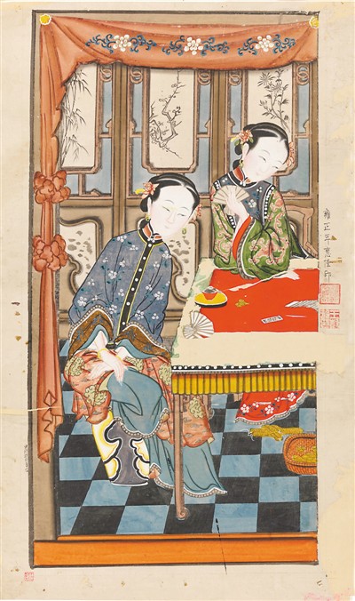 例如印制于清康熙時期的《四藝雅聚》《太白醉酒》《四季平安》,雍正時期的《加冠仕女圖》《葉戲仕女圖》,乾隆時期的《百花公主》《韓湘獻籃》《五福三星》,嘉慶時期的《暖香塢雅制春燈謎》《時遷盜甲》《游園驚夢》《呼丕顯下邊庭捉拿潘美》《打龍袍》,以及道光時期的《莊稼忙》《福壽平安》等,都是現(xiàn)有存世的孤本。