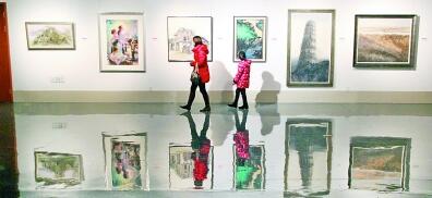 1月24日,山西省永濟(jì)市博物館歷史文化展展廳,攝影愛好者興致勃勃地欣賞當(dāng)?shù)嘏e辦的“文博杯”文物攝影大賽作品展。