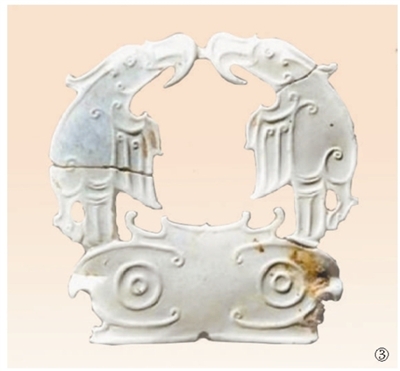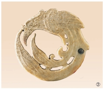 以往在湖南澧縣孫家崗石家河文化墓葬中發(fā)現(xiàn)鳳形透雕玉飾,在湖北天門石家河羅家柏嶺發(fā)現(xiàn)團(tuán)鳳玉飾(圖②),還有石家河譚家?guī)X遺址新出土的雙鳳玉佩(圖③),表明石家河文化居民對(duì)鳳懷有特別的情感認(rèn)同,他們應(yīng)是神鳳最初的締造者。最初的鳳形,應(yīng)當(dāng)是誕生于石家河文化,從此鳳崇拜也成為一種規(guī)范的信仰方式,并且很快匯入史前造神運(yùn)動(dòng)的潮流中。
