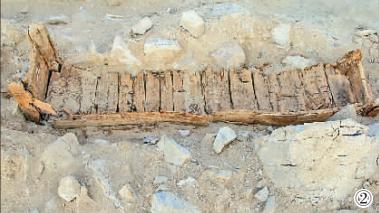 ②石頭城遺址發(fā)掘出土的箱式木棺