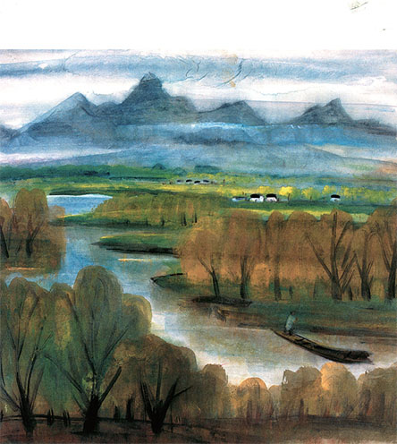 林風(fēng)眠的風(fēng)景畫(huà),不僅限于西湖和秋林,還有描繪松林、山村、農(nóng)舍、溪流、海浪等題材,他的《風(fēng)景》創(chuàng)作于上個(gè)世紀(jì)50年代,以墨色層層渲染、以水性顏料融入濃墨,橫涂豎抹,以單純簡(jiǎn)潔的造型傳情,引人進(jìn)入清新、恬淡、優(yōu)美而深邃的意境。這與他汲取中國(guó)民間傳統(tǒng)藝術(shù)有著密切的聯(lián)系,他將民間藝術(shù)的情趣注入繪畫(huà),帶來(lái)清新而鮮活的生命力。