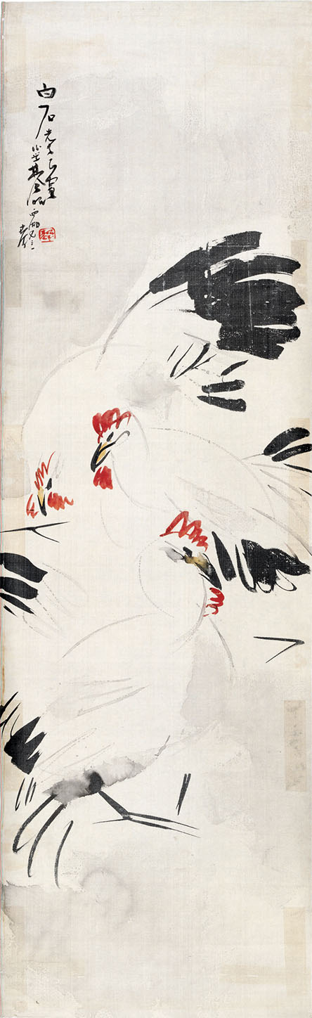 他用相近的筆法描繪了枝干、花葉,雀鳥(niǎo)姿態(tài)相似,并沒(méi)有對(duì)眼、爪、羽、翅的細(xì)致描繪,只有頭部向左樣統(tǒng)一中,呈現(xiàn)出單純、明朗、突出的藝術(shù)風(fēng)格。創(chuàng)作于上世紀(jì)五六十年代的《寒鴉》《貓頭鷹》,作品通過(guò)黑白的對(duì)比,營(yíng)造出沉郁孤寂的意境,卻又不一味地消沉或顧影自憐,仿佛在感傷中蘊(yùn)涵著勃發(fā)的生命力和無(wú)限的希望。
