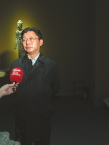 這是四川省作協(xié)主席、著名作家阿來第二次參觀敦煌藝術(shù)大展,此前,他曾去過敦煌、麥積山、克孜爾等地,對這次展出的文物非常熟稔,對佛教藝術(shù)和敦煌文化更是信手拈來。阿來對絲綢之路的歷史津津樂道,在他看來,絲綢之路不僅是運(yùn)輸絲綢的物流通道,還是文化傳播的橋梁,不僅把佛教文化傳入了中國,還把中國的文化以絲綢等物質(zhì)為載體傳向世界。
