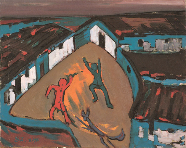 展覽開幕當天,還舉行了此次回顧展的研討會。圖為張立國作品《我的童年》。 (小 辰)