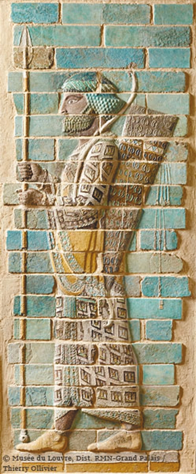 圖為波斯阿契美尼德時(shí)代王宮內(nèi)《弓箭手彩釉磚》。
