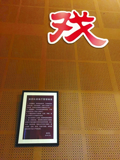 北京人藝,三樓排練廳,“戲比天大”四個大字高高掛在南面的墻上,在“戲”字底下新添了一個不大的相框,赭紅色的底上印著100多個白色的字,簡單地寫著五條“演員隊后臺管理制度”。如果不是特意尋找,可能很多人都不會注意到它的存在,但對北京人藝而言,這個小框不容忽視——這是人藝建院60多年來,演員隊第一次制定一套管理制度,不僅掛在排練廳,也掛在首都劇場的后臺。