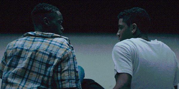夜晚的沙灘上,兩人并肩而坐。平時(shí)打架、泡妞、抽煙的凱文,說起有時(shí)還挺喜歡自己住的片區(qū):“微風(fēng)穿過街區(qū)時(shí),一切都好像暫停了,因?yàn)槊總€(gè)人都在感受微風(fēng),于是一切都安靜了下來?!?/p>
