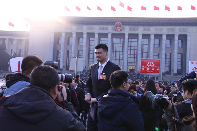 參加全國(guó)政協(xié)十二屆五次會(huì)議開(kāi)幕會(huì)的委員姚明