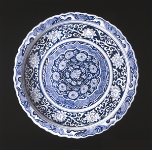 元青花瓷盤陳列在“變革與適應(yīng)”中。公元900至1550年是一個(gè)在藝術(shù)和技術(shù)上取得巨大成就的時(shí)期,其物品常顯出驚人的創(chuàng)造性,許多物品至今仍被視為文化象征。奧斯曼土耳其的伊茲尼克瓷器、中國的元青花及尼日利亞的雕刻都是詮釋制作它們的那些社會(huì)的標(biāo)志性產(chǎn)品。