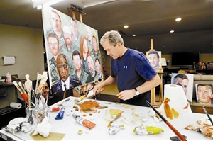 深圳晚報綜合消息 人們很驚訝,久不露面的小布什再次出來的時候已經變身藝術家了。溫斯頓·丘吉爾作為政治家畫家贏得了嚴肅畫家的美譽——藝術史學家貢布里希將他比作風景畫家約翰·康斯特布爾。而對于小布什的畫,美國著名藝術評論家薩爾茨委婉地表示,小布什的舊畫作看起來簡單笨拙,但已是無天賦的人能做到的最好程度?!都~約時報》說小布什擁有“謎之技法”,能將照片變成更加令人尷尬的圖像,輔之以扭曲和笨拙的筆法,并將這畫比作“舊貨商店里的東西”,對于這個評價小布什是該喜呢還是憂呢?