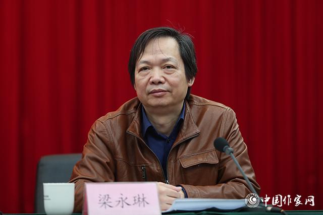 人民日?qǐng)?bào)社文藝部主任梁永琳在頒獎(jiǎng)儀式上介紹征文情況