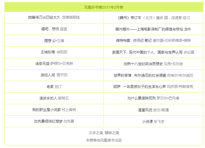鳳凰好書榜2017年2月榜(20種)
