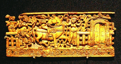 阿富汗是古代絲綢之路上將中國、印度與希臘、羅馬以及埃及聯(lián)系在一起的重要一環(huán),貝格拉姆正是其中一處交通要沖,也是阿富汗最重要的考古遺址之一??脊艑W(xué)家在這里發(fā)現(xiàn)了兩個密封于2000多年前的房間,房門用磚封閉并且涂上了灰,以使人們徹底遺忘。研究表明,它們是用來儲存貨物的巨大庫房。作為家具的飾板,大量象牙雕刻被保留下來,這些帶有濃郁印度風(fēng)格的雕刻,讓我們得以窺見2000年前的人們高超的藝術(shù)創(chuàng)作水準(zhǔn)。