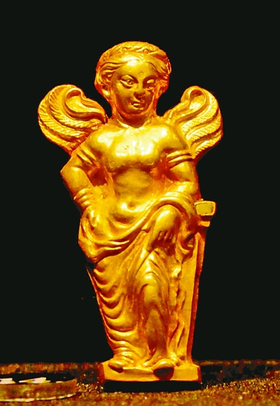 ④蒂拉丘地出土的黃金制成的“帶翅膀的阿佛洛狄特”。本報(bào)記者 李韻攝/光明圖片