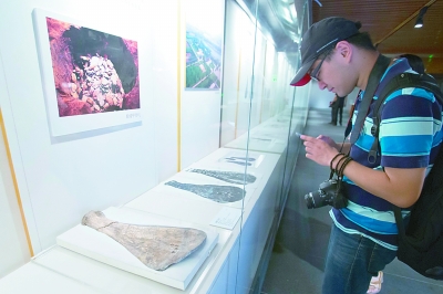 北京,觀眾在參觀國圖館藏甲骨文實物。趙冰攝 光明圖片/視覺中國