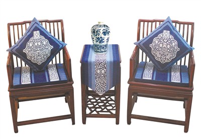 他是這么說(shuō)的,更是這么做的。他把傳統(tǒng)的小布印染發(fā)展為寬布印染,把單調(diào)的藍(lán)白兩色創(chuàng)新到深淺藍(lán)復(fù)色,把原始棉麻面料拓展到絲綢面料,創(chuàng)作出大量兼具傳統(tǒng)與新意的紋樣,制成兼具實(shí)用性和審美性的衣服、桌布、抱枕等,與更多人分享藍(lán)白之美。每當(dāng)他的努力得到實(shí)踐的認(rèn)可,父親都會(huì)咧開(kāi)嘴笑成孩子模樣。
