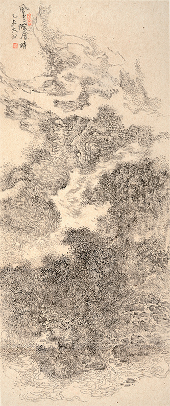 讓人預(yù)想不到的,作為年輕一代的程陽(yáng)陽(yáng)反而強(qiáng)調(diào)骨法用筆,以淡墨層層點(diǎn)染,每一筆如斧如鑿,似棉里裹鐵,散發(fā)古拙、木樸、滯澀氣韻。黃賓虹給藝評(píng)家裘柱常的信中說(shuō):“初視不甚佳,或竟不見(jiàn)佳,諦觀而其佳處為人所不能到,用筆天趣,非深明其旨者視若無(wú)睹,久視無(wú)不盡美,此為上品?!焙卯?huà)不是一下就能看出來(lái)的,需要慢慢品味,這是山水畫(huà)非常重要的品性。程陽(yáng)陽(yáng)的山水畫(huà)近看亂柴亂麻,遠(yuǎn)觀渾然一體、氣韻自生;新睹不投眼緣,長(zhǎng)讀陳酒溢香、趣味不絕。中青年畫(huà)家能夠超然時(shí)風(fēng),用筆上不尖、不滑、不流、不浮,沒(méi)有討喜般去愉悅大眾感官,而是致力深耕內(nèi)心,以期怡情養(yǎng)性,這種美學(xué)境界值得稱道。