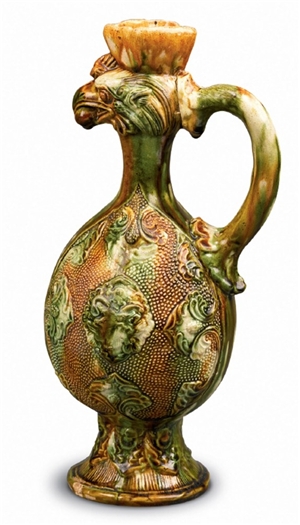 三彩印珍珠地 貼花獸面紋鳳首壺