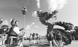 三月街上,白族金花的舞龍表演。 資料圖片