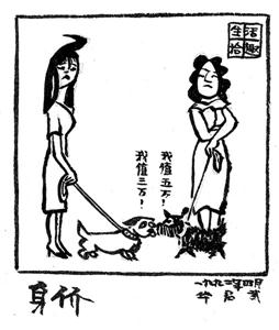現(xiàn)代漫畫是西風(fēng)東漸,所以,華君武和當(dāng)時的不少中國漫畫家一樣,也有自己的“洋師傅”。他經(jīng)常在英文報紙《字林西報》上看到白俄漫畫家薩巴喬的漫畫,極感興趣,不僅對其畫法努力效仿,連簽名都有意模仿。