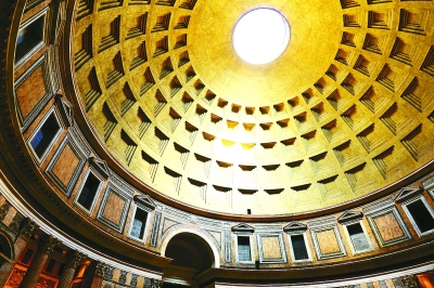 作為在人類歷史上第一個創(chuàng)建了地跨歐亞非三大洲的“世界帝國”的民族,羅馬是個氣魄宏大并且懂得享受生活的民族,所以這時期的建筑以恢宏、豪華為特色。鼎盛時期,羅馬人留下的宏偉而豐富的公共建筑遺產(chǎn),就技術(shù)和藝術(shù)而言,最重要的依然是“神”的建筑,其中首屈一指的當推建于公元2世紀的羅馬萬神廟。這是個大型圓形穹頂建筑,地面直徑和高均為43.3米(這個跨度記錄保持了1800年)。穹頂中央開了一個圓形天窗,直徑8.92米。穹內(nèi)表面做出140個方形凹格以減輕重量,分5圈排列。正立面是一座秩序端莊的柱廊。神廟具有一種巨大的美的震撼力,站在殿內(nèi),置身于這樣一個宏大而單一的圓形空間,能感到一種“高貴的單純,靜穆的偉大”(溫克爾曼語)。
