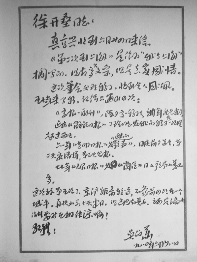 筆者藏有吳伯簫1980年6月致徐開壘的兩封信,從中可以了解當(dāng)時吳伯簫寫作發(fā)表作品的經(jīng)過。吳伯簫是應(yīng)“筆會”主編的徐開壘的來信邀約后,寫作完成《第二次到上?!返模诩乃透寮耐瑫r附信一封。在接到徐開壘用稿回信后,吳伯簫又馬上回信。讓我為之關(guān)注和感動的,是兩封信中字里行間展現(xiàn)的吳伯簫的為人性格和行事作風(fēng)。