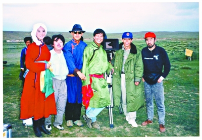 1992年8月底,呼和浩特伊盟草原,拍攝《狹路英豪》。右二顧長(zhǎng)衛(wèi)、左三姜文、左四萬梓良。
