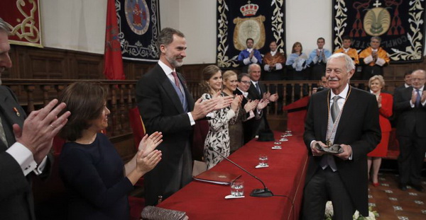門多薩在阿爾卡拉大學(xué)最古老的禮堂接受國王頒獎。