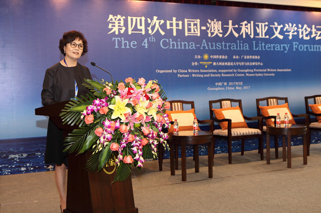 中國作協(xié)主席鐵凝在致辭中談到:“2017年,欣逢中國和澳大利亞建交45周年,中澳兩國在政治互信、經(jīng)濟(jì)互惠、人文互通等方面取得了豐碩的成果。正如郝金斯教授所說,在‘一帶一路’的新時(shí)代,我們的文學(xué)交流恰逢其時(shí)。在‘一帶一路’、‘和平合作、開放包容、互學(xué)互鑒和互利共贏’理念的指引下,加強(qiáng)各國之間的人文交流將有利于增進(jìn)民心相通,而文學(xué)交流是各國人文交往中的一個(gè)重要領(lǐng)域。過去30多年來,我們兩國的文學(xué)交流日益加強(qiáng),作家互訪不斷,兩國作家作品的互譯出版更有助于增強(qiáng)兩國作家和民眾之間的深入了解。中澳文學(xué)論壇就是我們友好交往中的一個(gè)重要舉措。